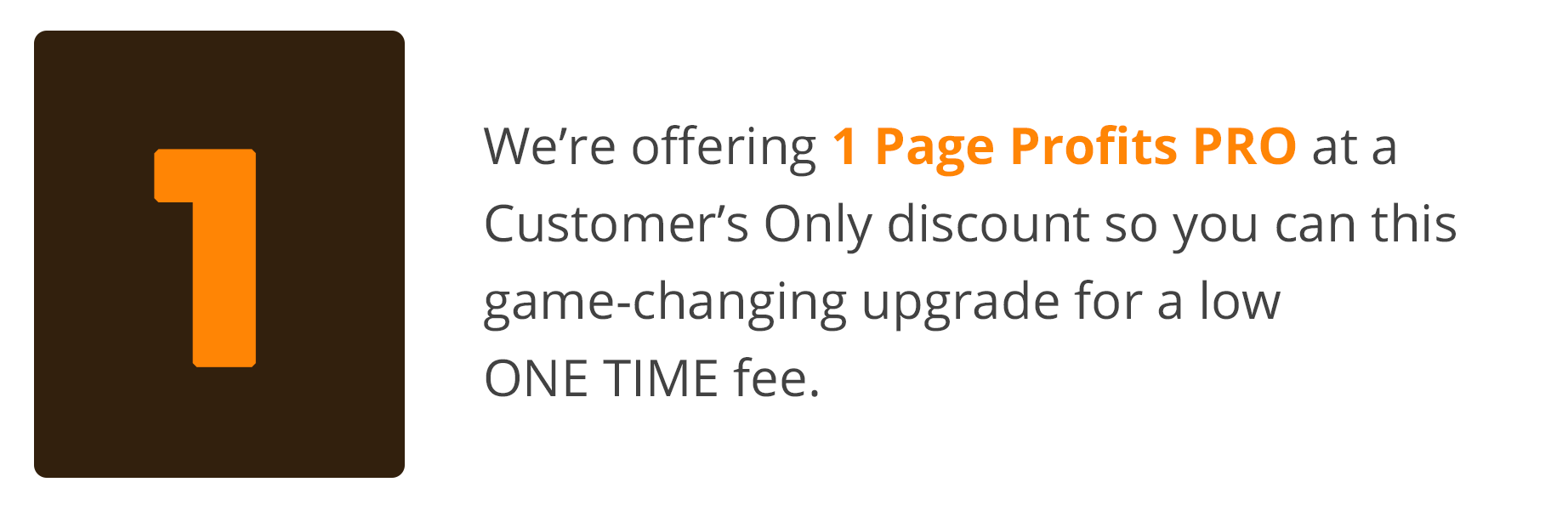 I don’t want you to make the same mistake by hesitating and losing out on this 1 Page Profits Pro version deal.